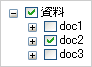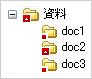| | 「資料」フォルダ(親フォルダ)にチェックが入っているので、「doc1」「doc2」「doc3」(サブフォルダ)もバックアップ対象。